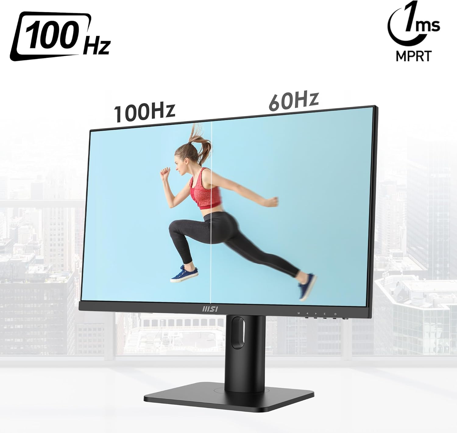 The MSI MP243XW delivers a refined 23.8" display engineered for professionals demanding precision in coding, design, and content creation. Its 100 Hz refresh rate and 1ms MPRT response time eliminate motion blur, ensuring fluid visual feedback during intensive workflows. The IPS panel with 178° wide viewing angles guarantees consistent color accuracy across any seating position, while 119% sRGB coverage meets professional color standards. TÜV certification confirms the display meets rigorous eye-care standards, and the integrated Less Blue Light PRO technology reduces eye strain without compromising color fidelity. Built-in speakers add convenience to your workspace setup.